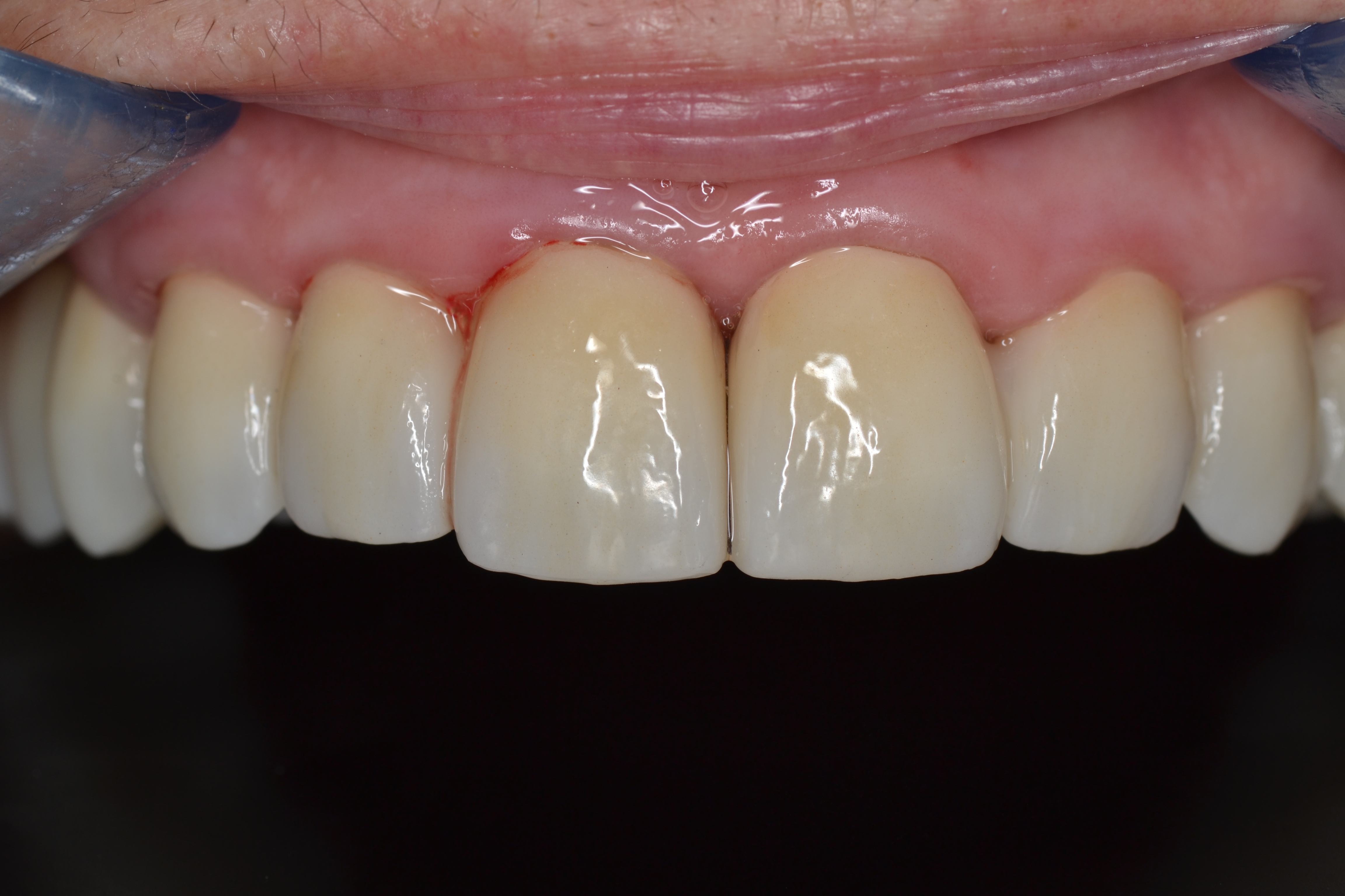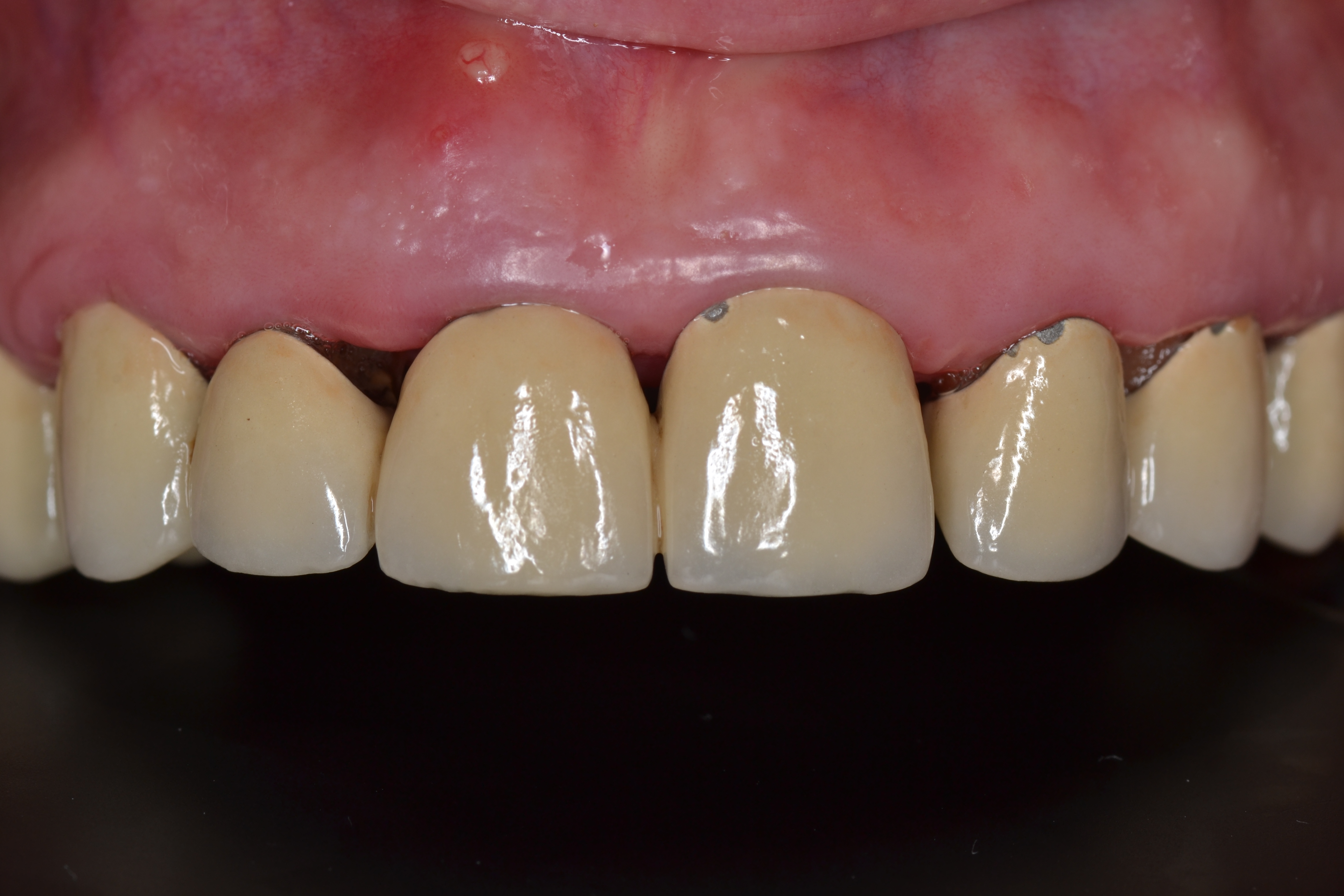 Η αποκατάσταση του χαμόγελου έγινε με τοποθέτηση μιας νέας μεταλλοκεραμικής γέφυρας σε προγομφίους, κυνόδοντα και πλάγιο τομέα δεξιά άνω.