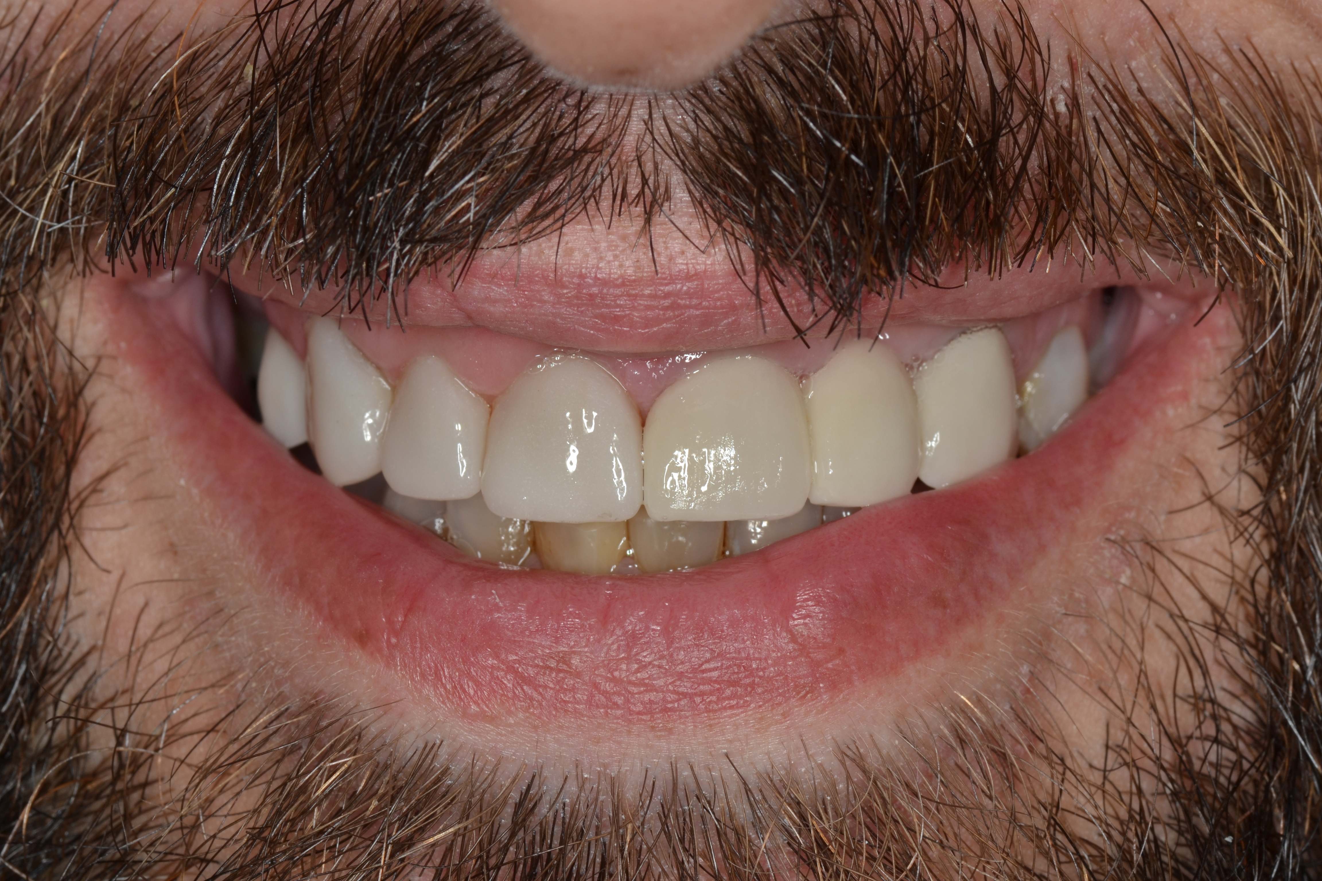 Οι νέες μεταλλοκεραμικές γέφυρες που κατασκευάστηκαν, αποκατέστησαν την αισθητική ισορροπία του χαμόγελου, την σωστή μάσηση και επανέφεραν την αυτοπεποίθηση του ασθενούς.