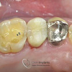 The previous silver filling was removed and a new aesthetic composite resin filling was done to restore the tooth’s form and function.