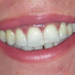 This lady presented in our practice complaining about her short and worn anterior upper teeth.